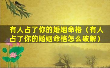 有人占了你的婚姻命格,其实是一种民间的说法,并没有科学依据。婚姻的幸福与否,取决于两个人自身的性格、相处模式和相互的磨合。