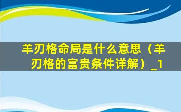 羊刃格的富贵条件详解