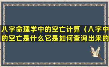 八字命理学中,空亡是指命局中某个地支无相应的支来合冲,导致该地支孤立无援。空亡的计算方法分为天干空亡和地支空亡两种。