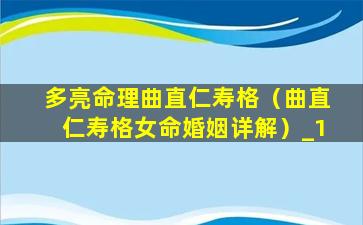 曲直仁寿格为八字命格的一种,此格女命婚姻多有波折。