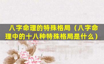 八字命理中,分为普通格局和特殊格局。特殊格局属于一种更为罕见和特殊的结构,往往具有一定的个性特征和运势特点。