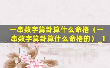 谈及“一串数字”算卦算命格,可谓是民间流传已久的玄学之说。此种说法究竟有无科学依据,至今仍是众说纷纭。