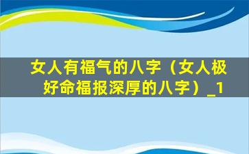 相传,八字中隐藏着女人福气的秘密。以下为福气满满的八字