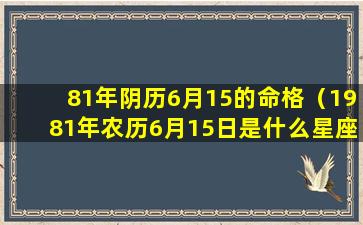 1981年农历6月15日对应公历1981年7月19日,属于巨蟹座。
