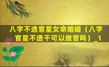 八字不透官星女命婚姻
