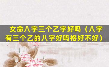 女命八字有三个乙字在婚姻方面有一定影响,具体吉凶要视整 🐠 体 🌼 八字格局 💐 而定。