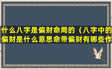 八字算命中,偏财也称为外财或横财,是意外之财或非正财所得的钱财。通常情况下,偏财星旺的人,有较强的财运,容易获得意外之财或投资理财上的收益。