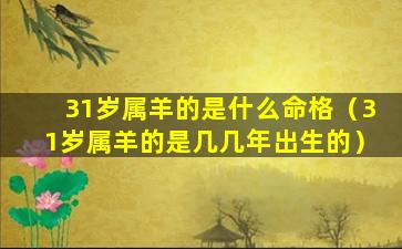 31岁属羊之人,性,格,温顺为人谦和心地善良。其,命理五行属土又称“戊羊 🦆 ”。