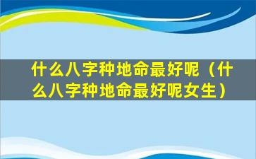 身旺财旺,八字中水旺木旺的女命为种地命最好。