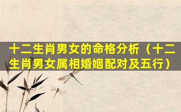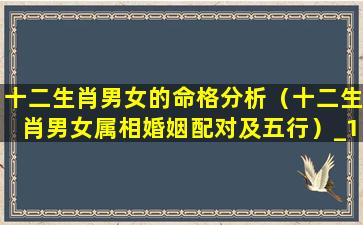 十二生肖男女的 💐 命格分析