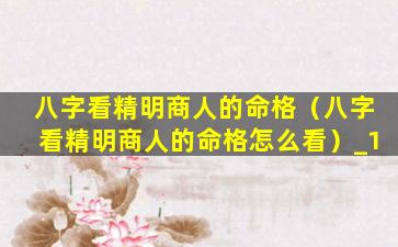 八字看精明商 🐯 人命 🌳 格