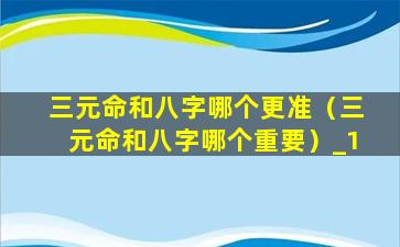 三元 🍀 命和八字的预测原理不同,因此在准确性方面也有不同的说法。一,些,人。认,为三元命,只。考虑年份过于笼统准确性较低而八字则考虑出生年月日时更加全 💮 面准确性也更高