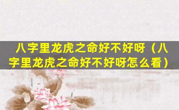 龙虎之命虽好,但也要结合八字的整体格局来看。如果八字中有冲克或刑害,也可能影响命格的吉利程度。