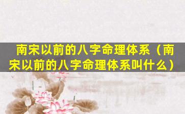 南宋 🐴 以 🐼 前的八字命理体系 🐱