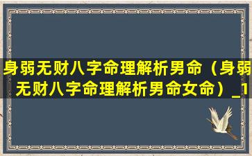 身弱无财八字命 🌳 理解 🐯 析:男命与女命