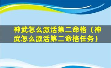 神武2第二命格任 🐡 务 🐘 激 💮 活