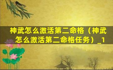 神武中激 🐅 活第二命格技 🐛 能需要以下步骤: