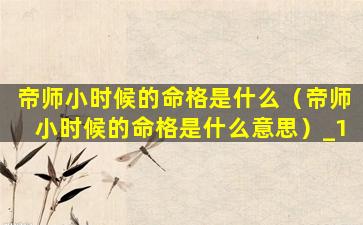 相传,帝,师,幼时偶遇高人高人观其面相叹 🌾 曰:“此,子,命,格虽奇特却暗藏玄机若能化解孤煞之气他日必成栋梁之才 🐼 。”