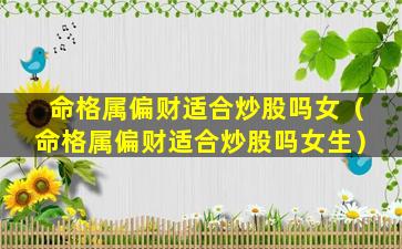 命格 🦅 属偏财的 🐛 女性是否适合炒股,需要根据其 🦆 具体命理格局进行综合判断。