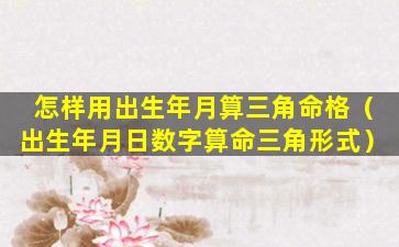 出生年 🌾 月日数字算命三角形式是一种基于出生日期的占卜方法。它将出生年月日中的数字转化为三角形,并。根据三角形的位 🐟 置和形状来推算一个人的性格和命运