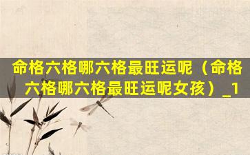 命格六格最旺 🌸 运的六 🦍 格 🦉 男