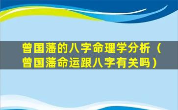 曾国藩 💐 的命运与八字之说是否 🐎 有关,一直是备受争论的话 🐞 题。