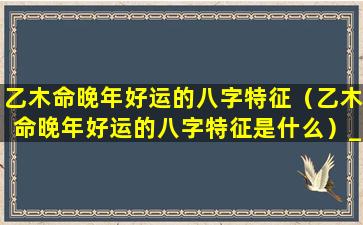 满足以上特 🌳 征者,乙,木,命,晚年运势亨通福禄绵 🦄 长安享天伦之乐颐养天年。