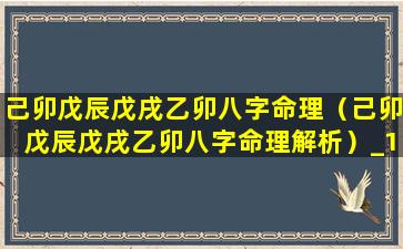 己卯戊 🌷 辰戊戌乙卯八字命理解析