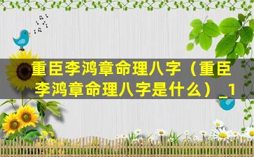 李鸿 💐 章,晚,清重 🐘 臣其命理八 🐺 字为: