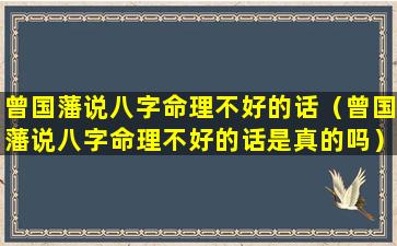 曾国藩说八字 🐱 命理不好是真的吗?