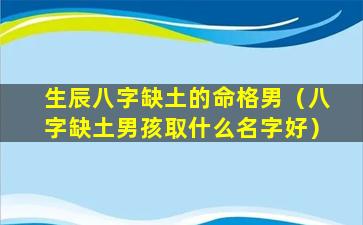 生 🐈 辰八字五行缺土的命格男孩子