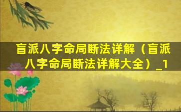 盲 🌸 派八 🐡 字命 🐎 局断法详解