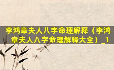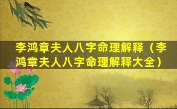 李 🐛 鸿章夫人赵小莲的八字格局不错,是一位聪慧能干、事业有 🌹 成的女性。