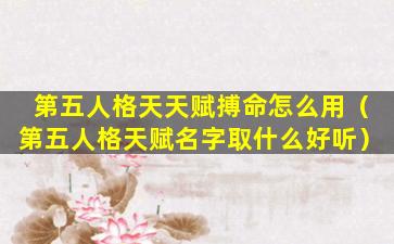 第五人 🐅 格 🦟 天赋取名指南