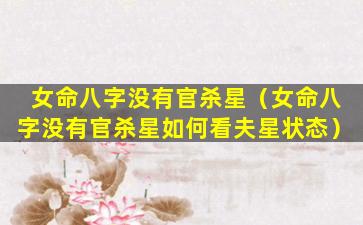 八字中官杀星代表事业和工作,女,命八字,没有官 🐺 杀星一般来说工作运势会 🐯 较为平淡。但。具体情况 ☘ 还要结合八字中其他因素综合分析