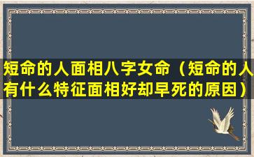 人面相学中,短,命之相多有不吉之特征而八字命理亦主掌人之寿夭。女,命。若兼具短命 🦍 面相及八字 🐠 运势则恐不佳