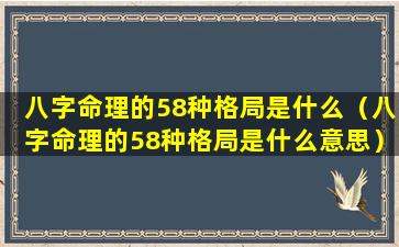 八字命理中 🐋 ,格,局是一种用来衡量命运好 🦋 坏的综合性指标由日柱天干地支、五行 🌵 生克制化及流年岁运等因素综合形成。共有种格局58各,有。其吉凶祸福之象