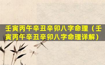 壬寅丙午 🦟 辛丑辛卯八字命理解析