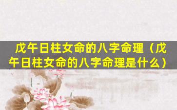 戊午日柱女命,早,年,运势较平稳中年后事业运势上 🌾 升财运亨通。晚,年运势。佳生活富足安康