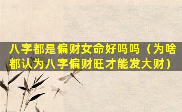 八字偏财,指的是生辰八字中偏财星旺盛的女 🌵 性命格偏财。代表着意外之财偏、门,之财那么八字都是偏财的女命好吗?