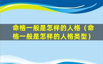 命格一般 🌷 的人格类型往往呈现出以下特 🐼 点: