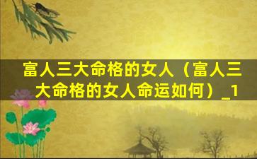 女子命带富贵 🐎 ,未,必,大富大贵但一生衣食无忧富 🦄 足安稳。她,们,旺。夫,兴。家聚财生财为家庭带来无穷的福气和财富如若娶得一位这样的贤妻可谓是前世 🐧 修来的福分