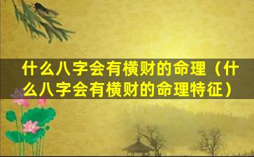 在八字命理中,横,财指的是意外或非正规 🐎 渠道获得的财富而能够拥有横财命格的人往往会在生活中收 🐅 获意 🌹 外之喜或意外之财。
