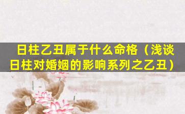 浅谈日柱对婚姻 🐋 的影响系列 🍀 之 乙丑