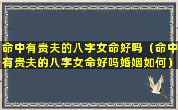 命中有 🦢 贵夫的八字女命好与否