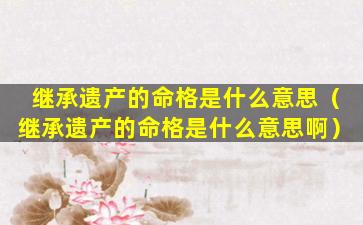 继承遗产的命格在命理学中,是,指个人命盘中出现特定的格局或征象预示着其可 🐞 能有机会继承或获得丰厚的遗产。