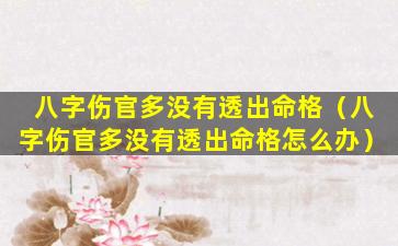 八字伤官多却没有透出命格,在命理上 🦢 有 🐎 着复杂的影响。