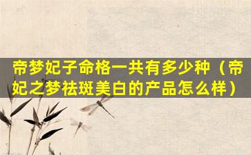 帝梦妃子命格种类繁多,相传共有以下几 🦁 种: