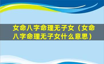 女命八字命理无子女,指,的,是在八字命理中女命没有代表子女的星曜或征兆预示命主可能难 🐋 以生育或无后代。