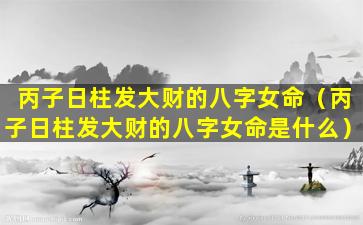 若八字具备以上条件,则 🌷 丙子日柱女命发 🐱 大财的 🐈 运势极佳。